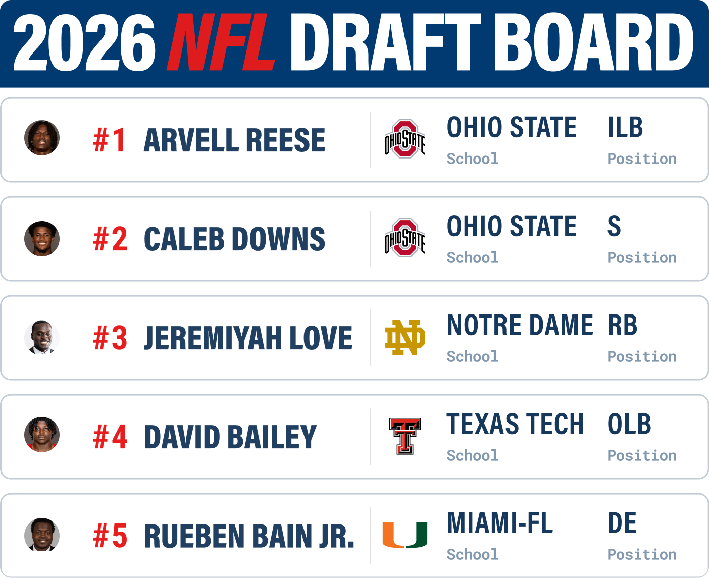 On our Draft big board, you’ll see Tony’s rankings and scouting reports for each prospect. And you can build a watchlist by clicking on the star at the far right of each prospect ranking.
