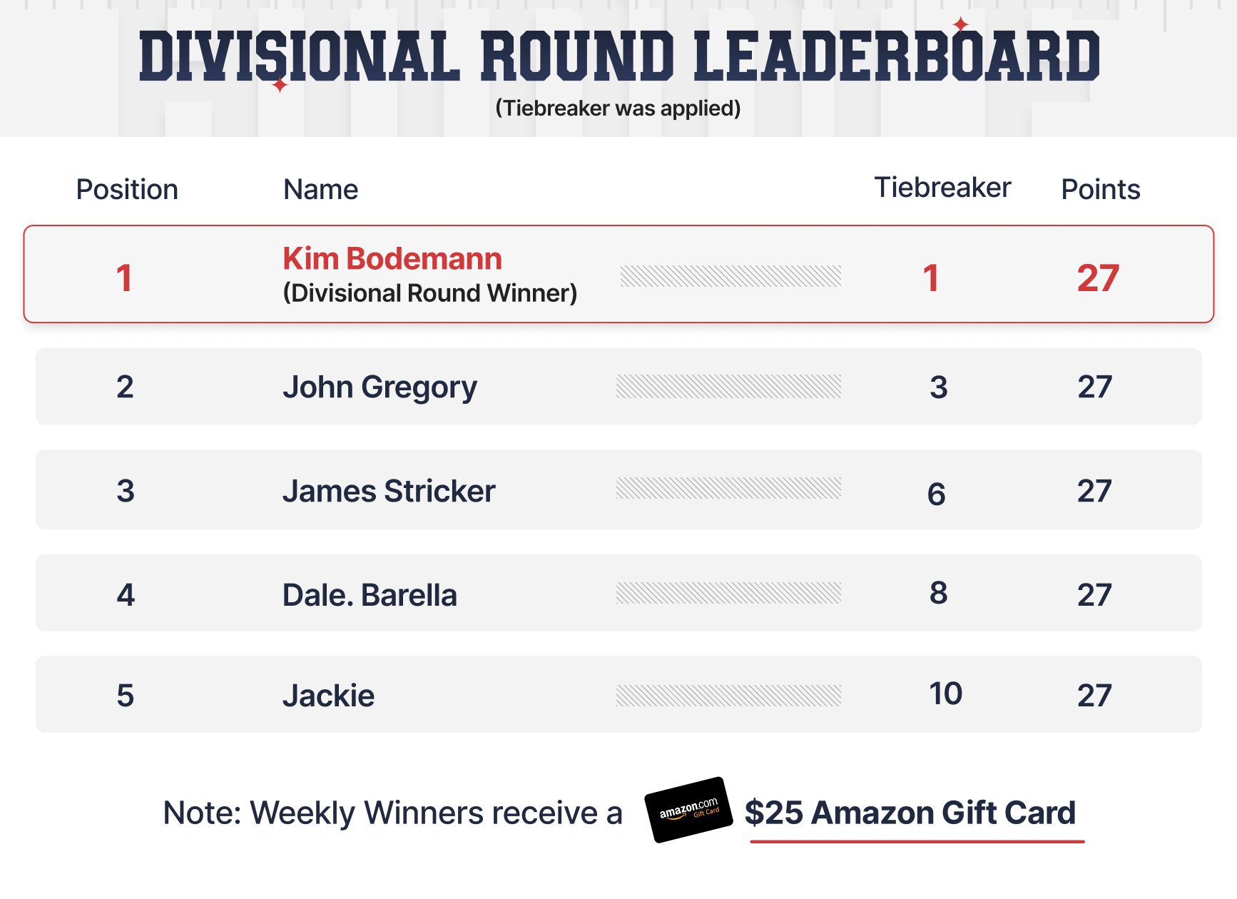 Kudos to everyone who took part in last week’s Pick’em Challenge. Your selections were bold and unpredictable, mirroring the chaos that defined the Divisional Round.